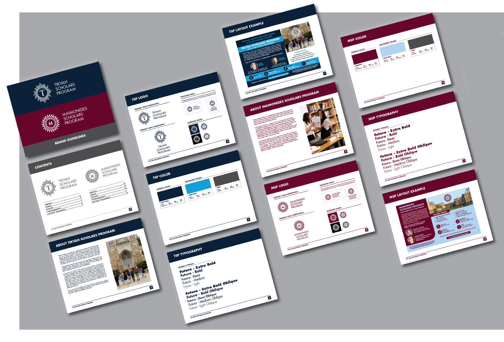 Created a visual identity system, including logos, brand guidelines, print collateral, and more for the Tikvah and Maimonides Scholar Programs based in New York.